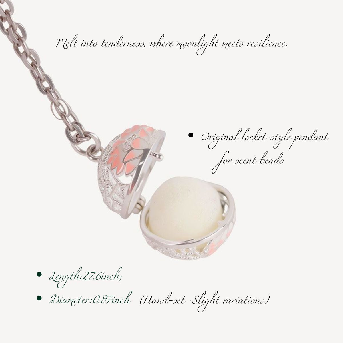 ✓ Open the pendant and place a few drops of essential oil onto the refill pad — let the aroma steady your breath and soften your mood.