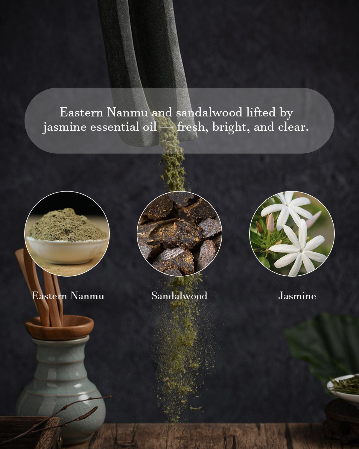 Hand-shaped from natural wood powder, each bead is infused with a carefully balanced fragrance blend. Its uplifting notes awaken motivation and sharpen attention.